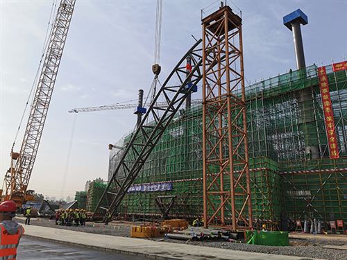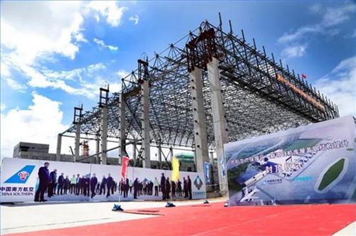 貴航生產保障區一期項目1號機庫鋼結構屋架成功“升頂”